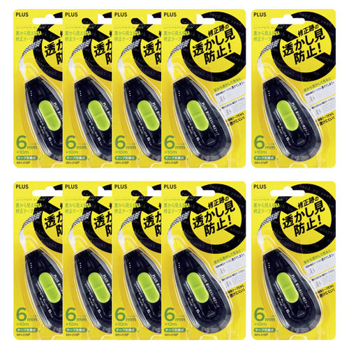 수정 전 문자가 읽기 어려운 6mmx10M 수정테이프 WH-016P. 수정한 곳의 뒷면까지 특수패턴으로 가려 앞에서도 뒤에서도 중요한 정보를 지킵니다.